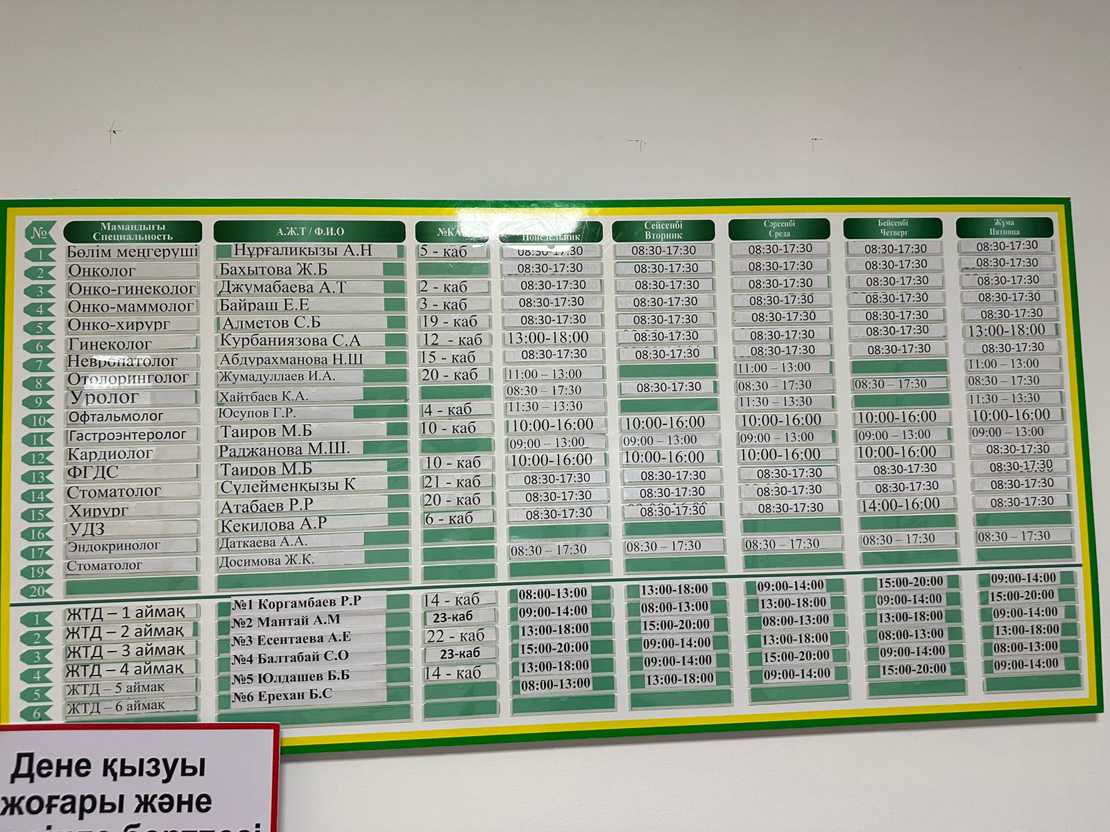 Қабылдау кестесі